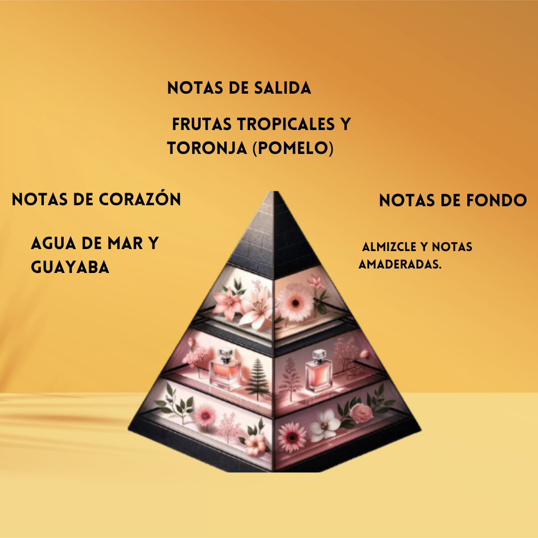 🍹 Notas de Pomelo, Guayaba y Agua Marina – Refrescante, jugoso y lleno de energía positiva desde el primer instante.