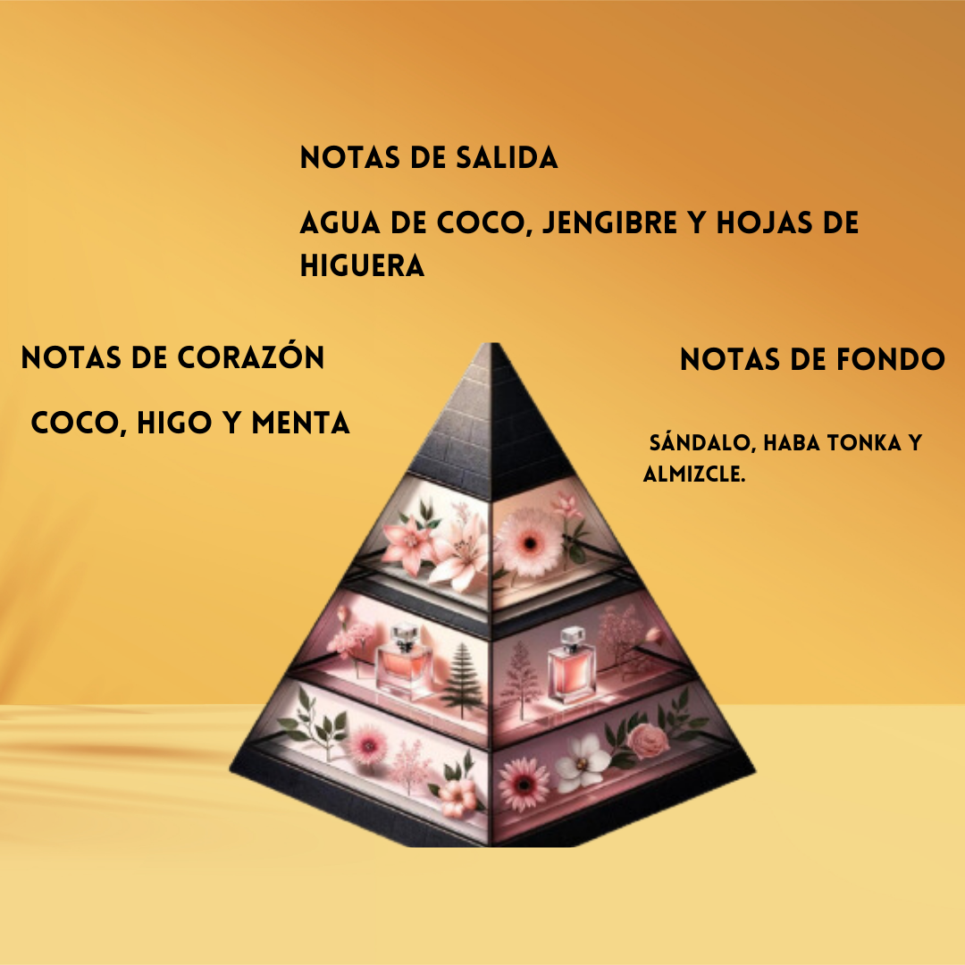 🍈 Corazón cremoso & herbal: Coco, Higo y Menta se funden en un acorde frutal y refrescante con pureza y sensualidad.