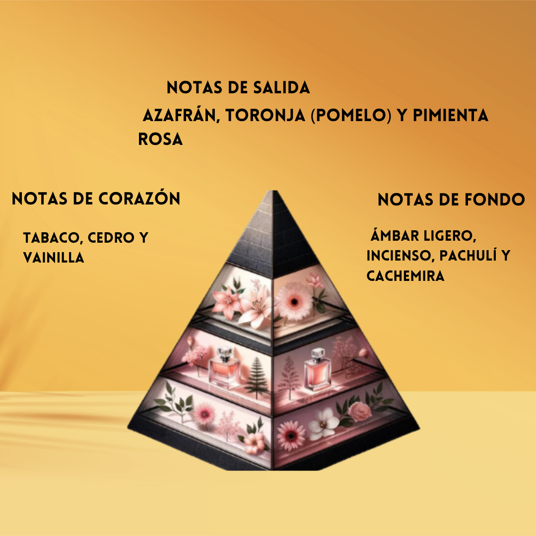 🌶️ Salida intensa & especiada: Azafrán lujoso, Toronja brillante y Pimienta Rosa vibrante.