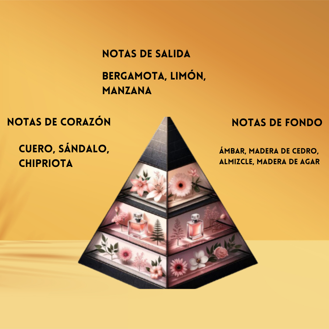 Notas de Fondo: Almizcle, musgo de roble, ámbar gris, vainilla