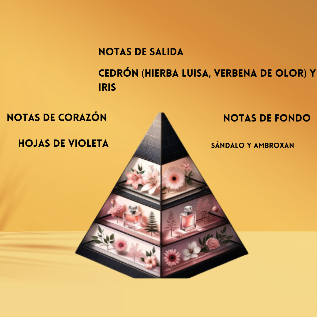 🌿 Apertura limpia y sofisticada – Notas de verbena de limón e iris aportan un frescor elegante y pulido.