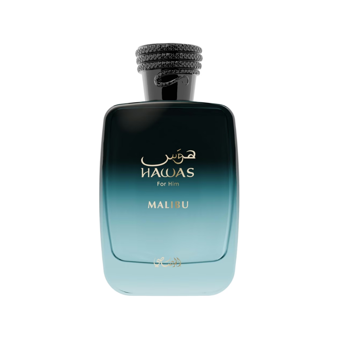 Hawas Malibu de Rasasi Eau de Parfum 100 ml (2025) es una fragancia aromática unisex que captura la esencia del verano infinito. Su apertura brillante mezcla la dulzura exótica de la piña con el frescor cítrico de la naranja y la toronja rosada, evocando la energía del sol sobre la piel. En el corazón, la calidez del ámbar, la elegancia de la raíz de lirio y la suavidad aromática de la lavanda crean una sensación de serenidad y sofisticación. Finalmente, la base se asienta sobre una combinación envolvente de haba tonka cremosa, almizcle, pachulí terroso y cachemira, otorgando profundidad y persistencia. Hawas Malibu es un perfume moderno, vibrante y equilibrado, perfecto para hombres y mujeres que buscan frescura tropical con un toque refinado y sensual.