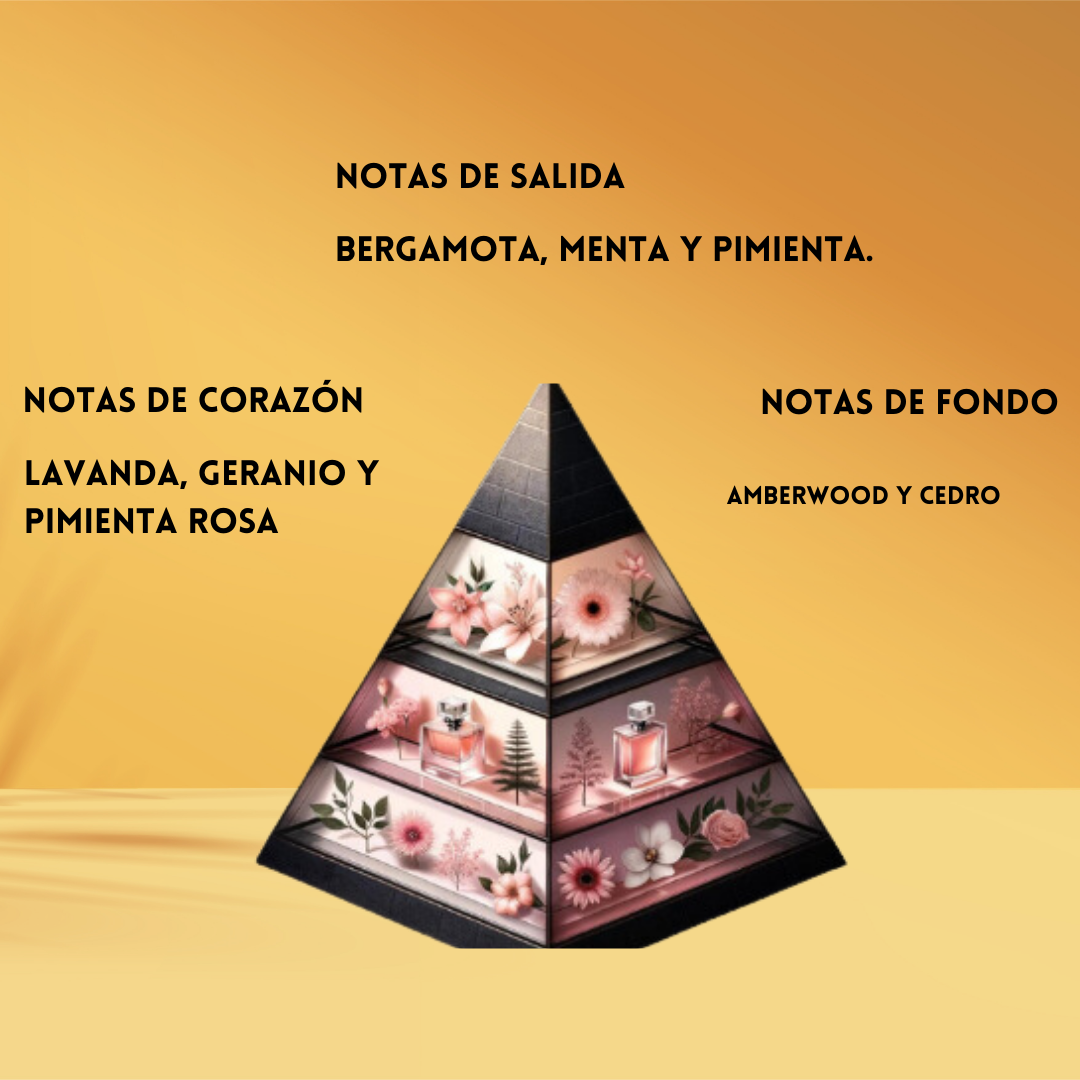 🌸 Corazón aromático & elegante: Lavanda relajante, Geranio sofisticado y Pimienta Rosa aportan sensualidad especiada.