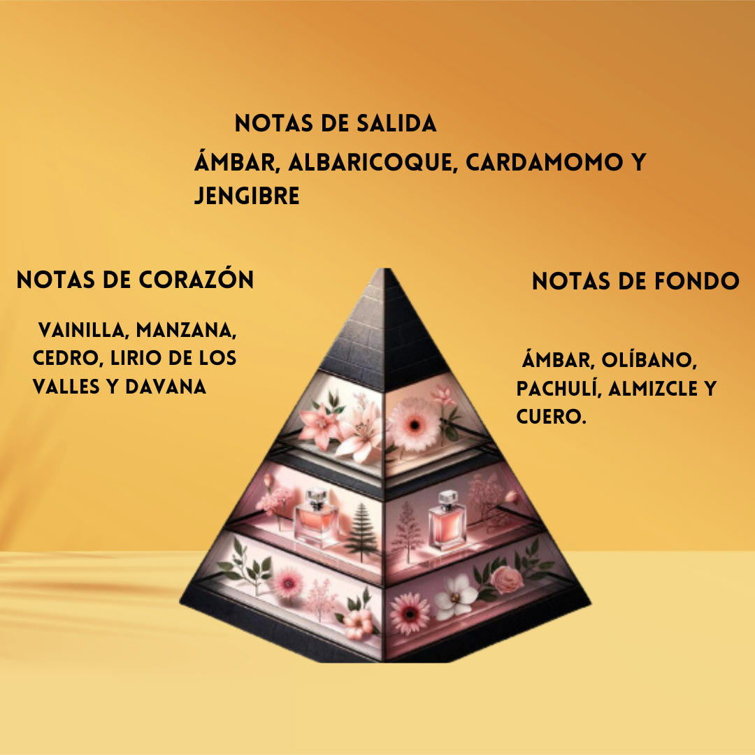 🔥 Salida cálida & especiada: Ámbar luminoso, Albaricoque jugoso, Cardamomo aromático y Jengibre vibrante.