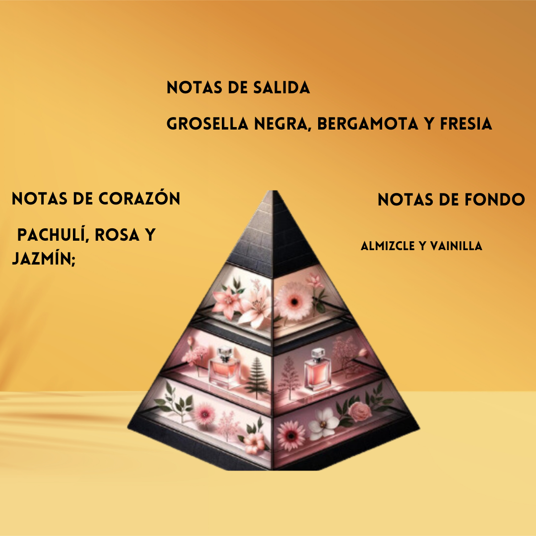 🌹 Corazón floral & sofisticado: Pachulí terroso, Rosa romántica y Jazmín elegante aportan equilibrio y profundidad.