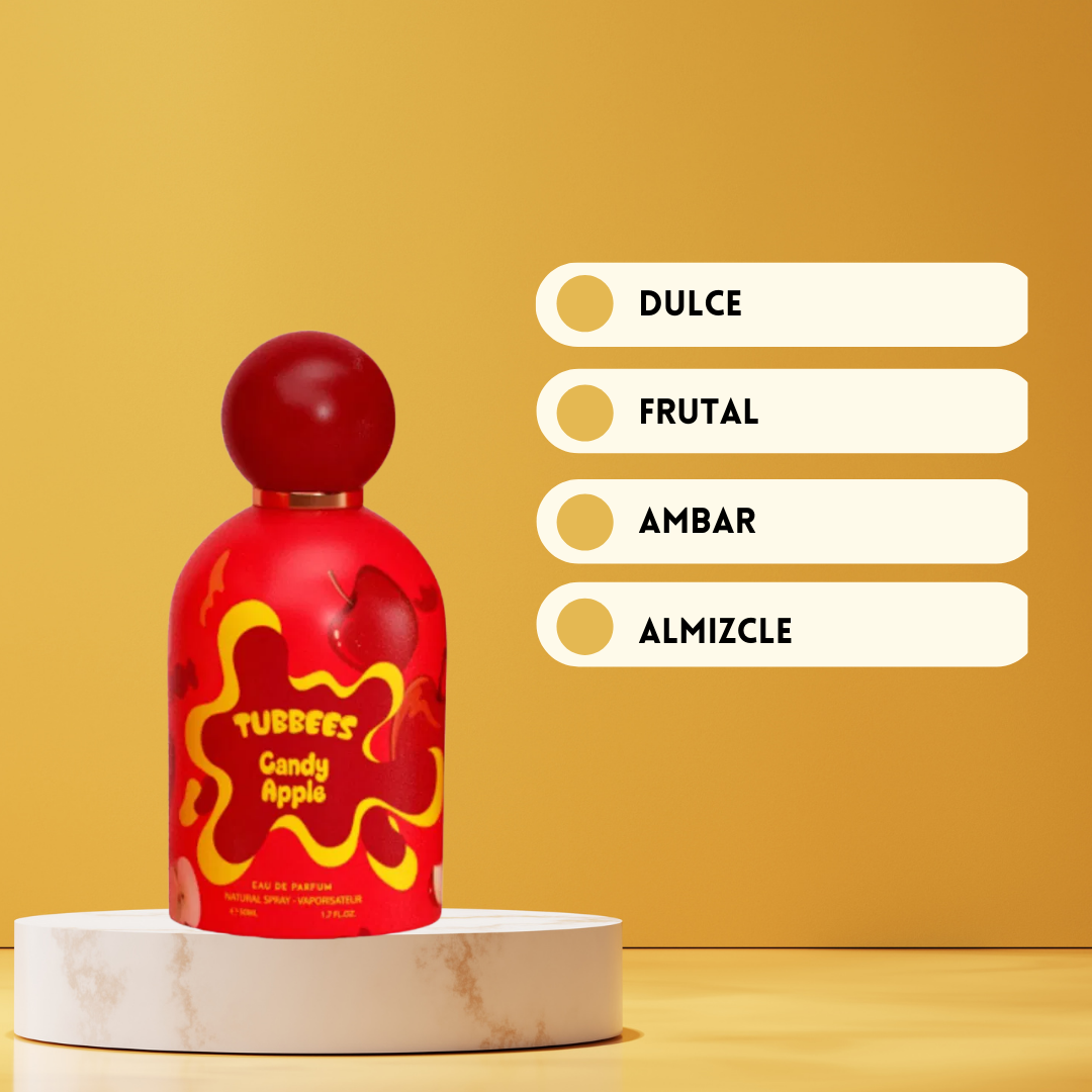 Tubbees Candy Apple de Grandeur Eau de Parfum Unisex 50 ml es una fragancia gourmand-frutal que captura la magia dulce y vibrante de un carnaval en cada pulverización. Creada por la reconocida casa Grandeur en los Emiratos Árabes Unidos, esta composición se abre con una explosión alegre de algodón de azúcar, manzana verde y ciruela, ofreciendo una salida fresca, chispeante y adictiva. En el corazón, la fragancia se vuelve más cálida y envolvente con canela, azúcar, frutos rojos, flores blancas y un toque de ámbar, creando un equilibrio perfecto entre dulzura y sofisticación. El fondo revela una estela reconfortante de caramelo, musgo y almizcle, que aporta profundidad, suavidad y una sensación limpia sobre la piel. Candy Apple es ideal para quienes aman los perfumes dulces y divertidos, pero con un acabado elegante y moderno, perfecto tanto para el día como para la noche.